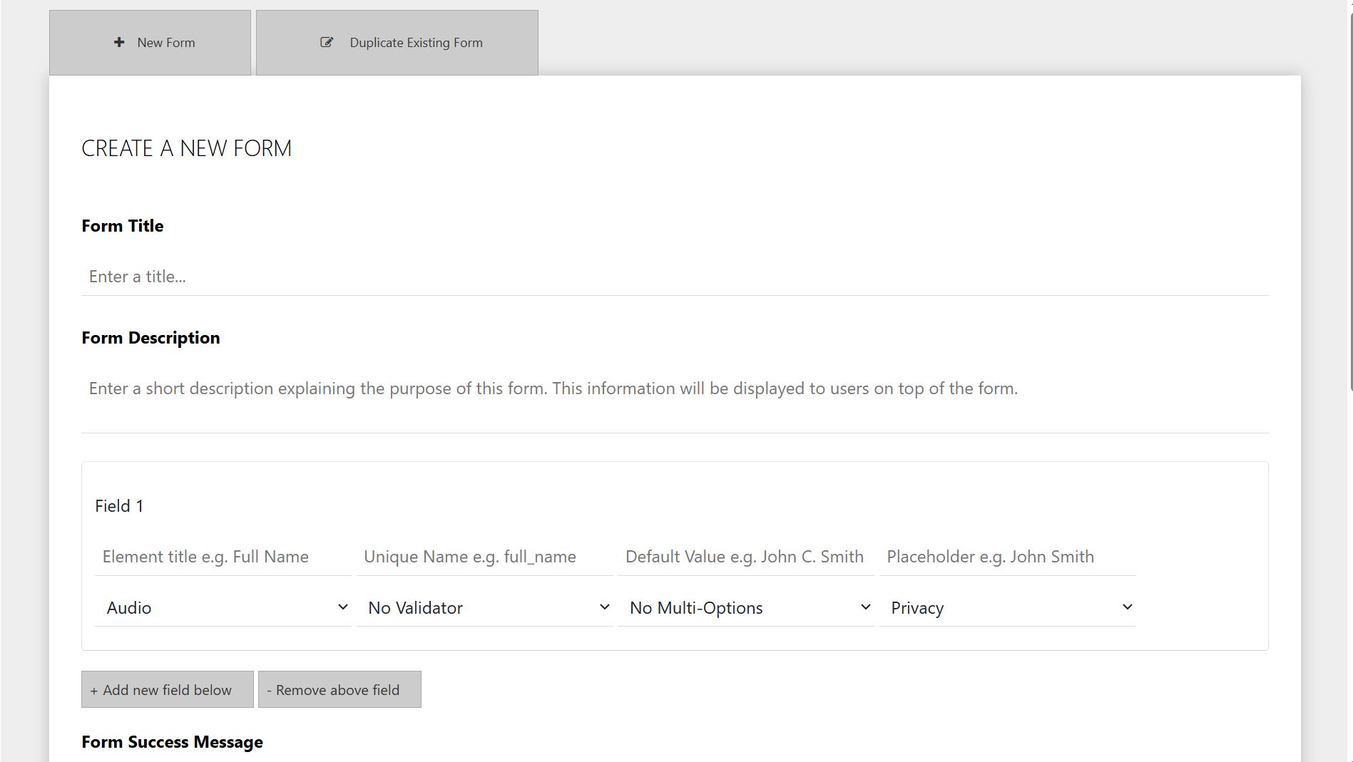 3. Enter a Form Title and Description (e.g. Contact Form).